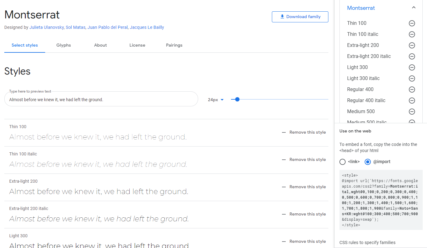 구글 웹폰트는 link방법과 import방법 두 가지로 나뉘는데