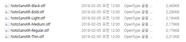 일단 다운을 받아보시면 otf파일이 보일 거고 모두 더블클릭하여 설치하시면 됩니다.