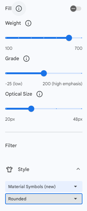 직접 style에서 fill, weight, grade, optical size를 변경할 수 있는데
