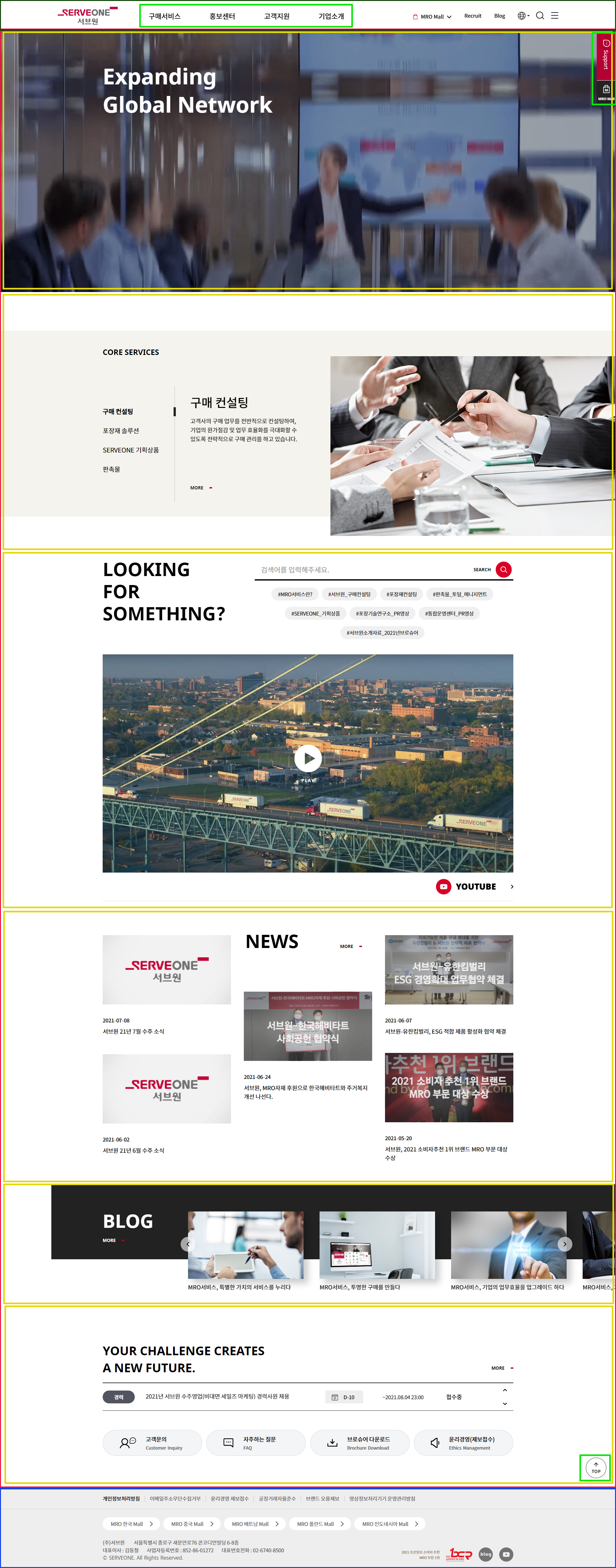 실제 저 노랑 박스들은 결과적으로 저 서브원이라는 사이트를 각각 설명해주는 부분들이 묶여있는 것들이니