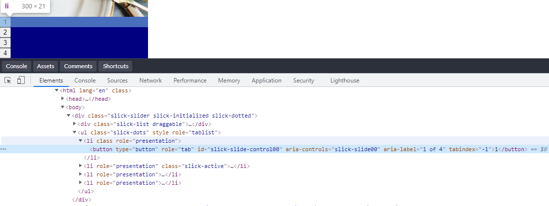 각 dots는 <li> 요소 안에 <button>으로 들어가 있어요