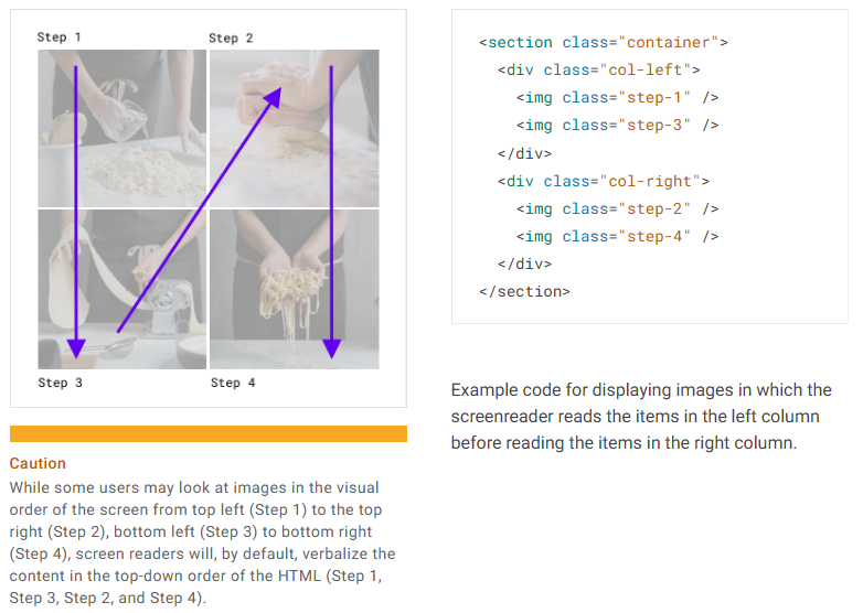 즉, 스크린 리더 사용자를 위해서는 왼쪽 열에 있는 모든 항목을 먼저 읽은 후에