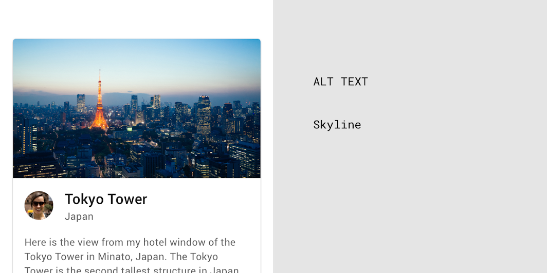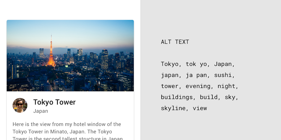 Alt 텍스트는 코드에 삽입된 짧은 설명(최대 125자)으로, 이미지를 볼 수 없는 사용자에게 이미지를 설명합니다