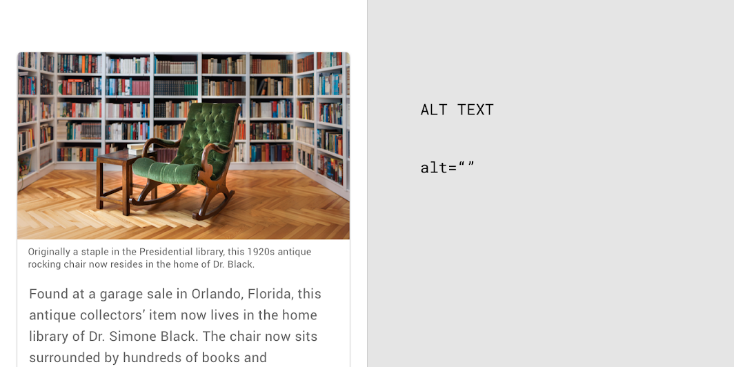 → 인접 텍스트가 이미 자산(이미지)을 충분히 설명하고 있다면, Alt 텍스트가 필요하지 않을 수 있습니다.