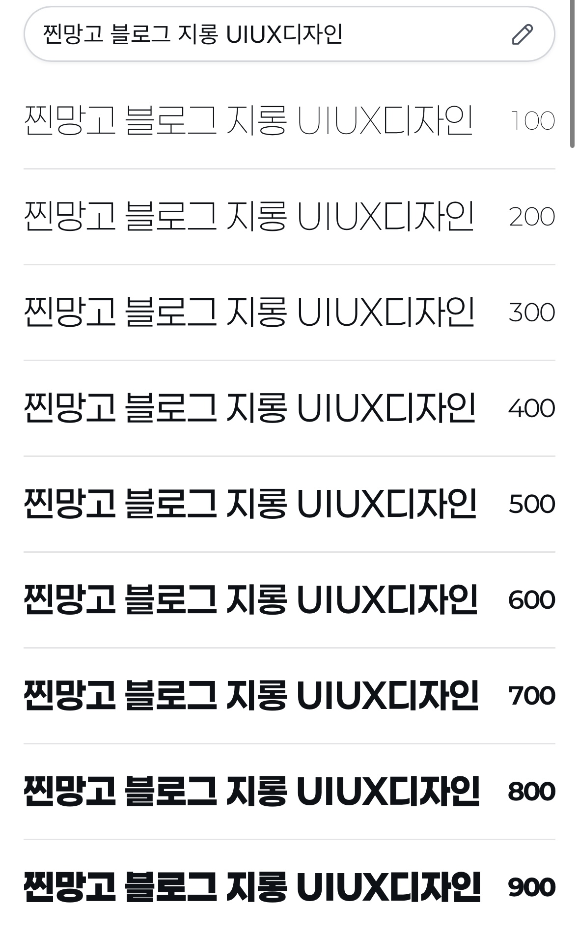 좀 더 굵기가 다양해진 폰트가 있는데요