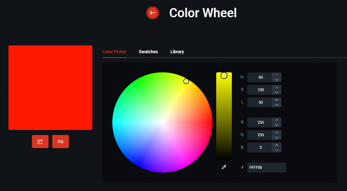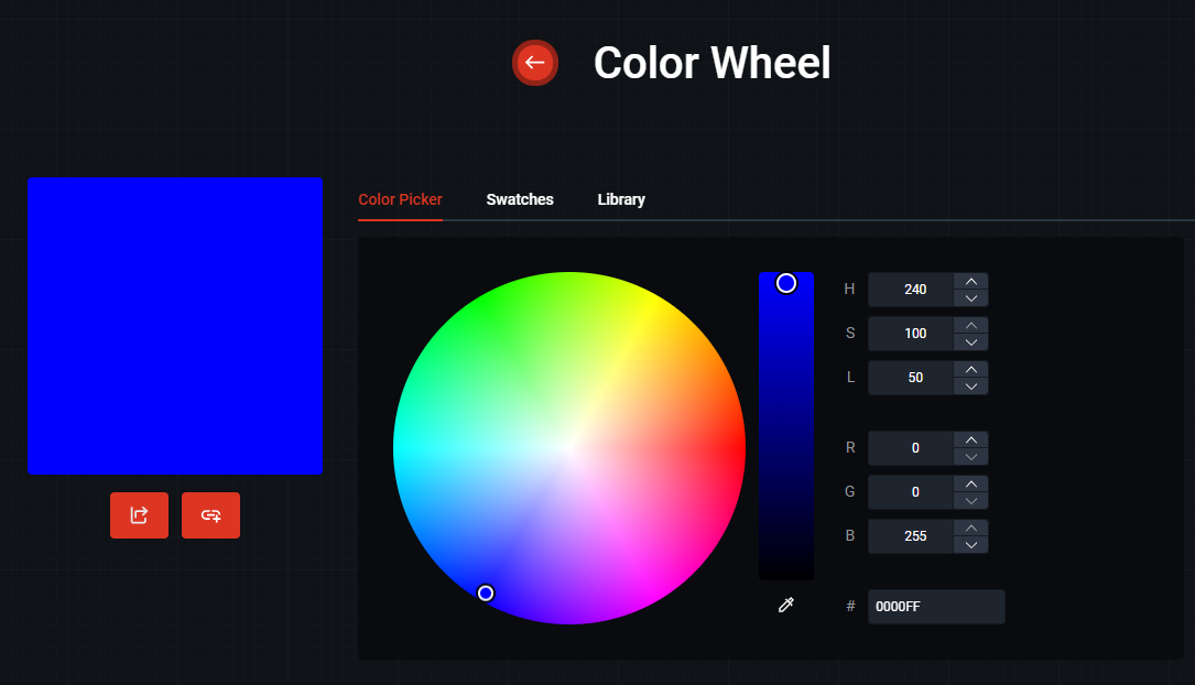 Color Wheel+ 메뉴를 클릭하면 색을 지정하는 팔레트가 나오고