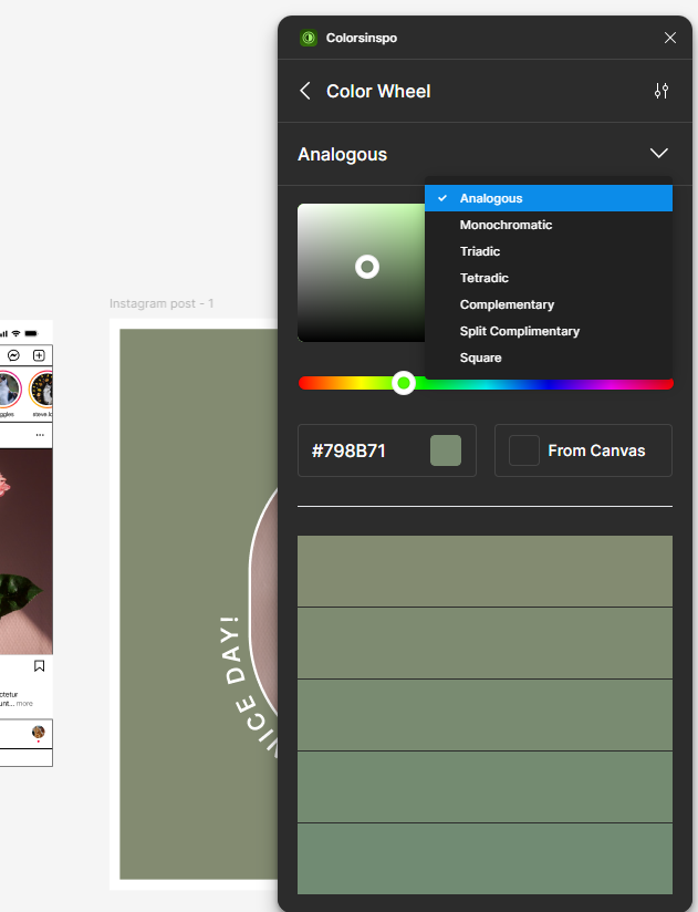 - Analogous (유사색): 부드럽고 조화로운 느낌