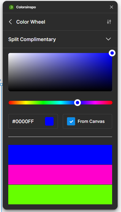 아마 이 컬러팔레트 플러그인은 파랑의 보색인 노랑(60°)을 기준으로 좌우 ±60°, ±90°, ±120° 등을 적용하면