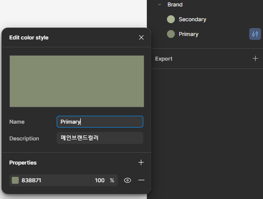 피그마 스타일 등록 시 /로 그룹화하면 primary/red, primary/blue처럼 자동 정렬됩니다.