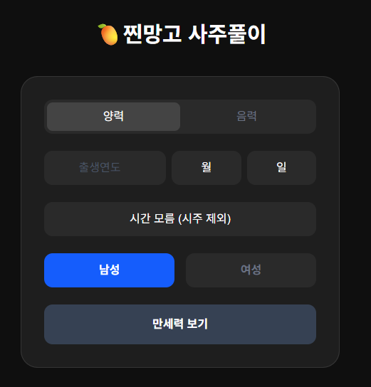 사주를 보고 싶어도 태어난 시를 몰라 이탈하는 사용자가 있을까봐 시간 모름 옵션을 배치했음