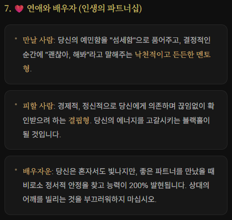 사주 분석 후 뿌려지는 텍스트들을