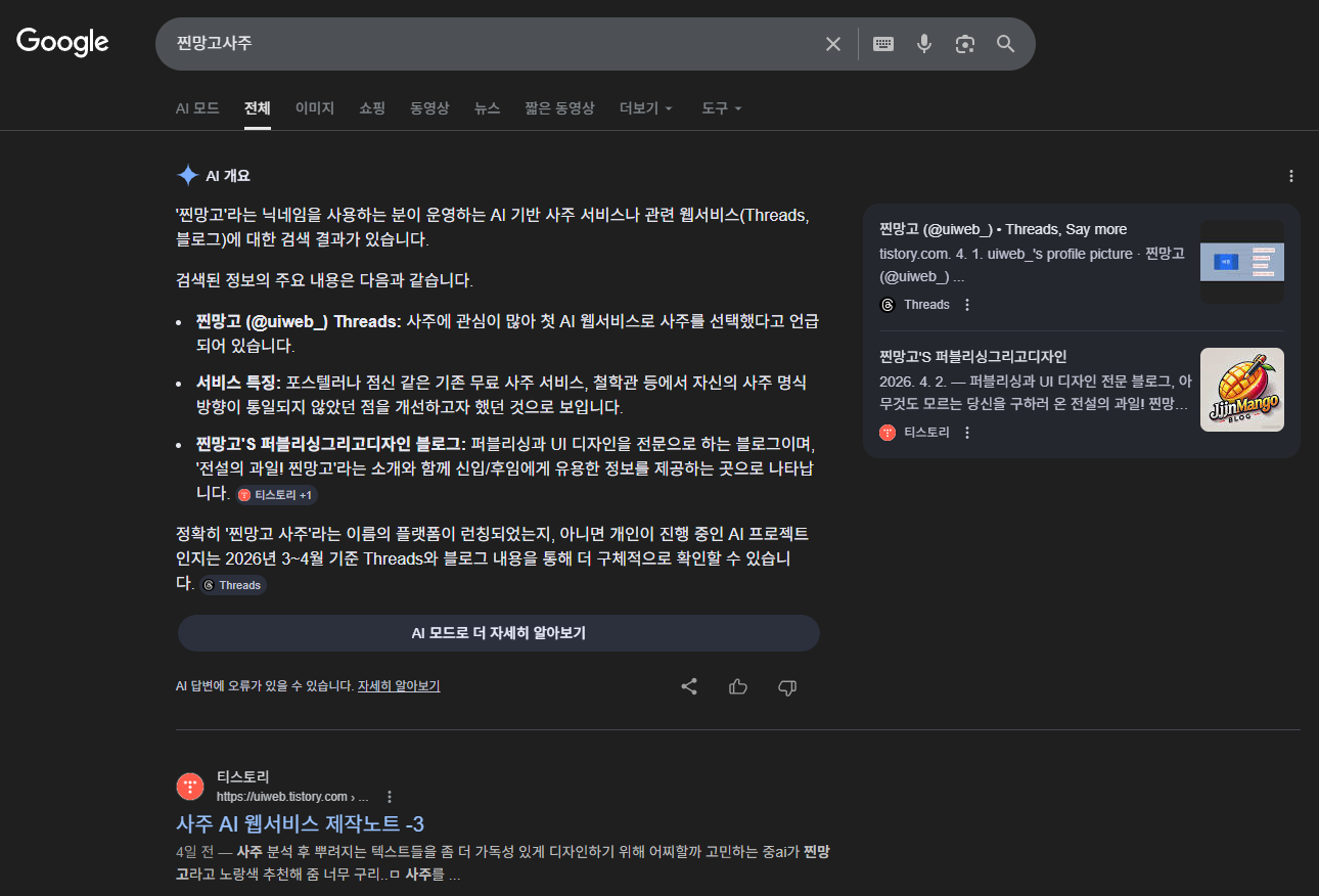 | 사주 AI 웹서비스 제작노트 - 6 (0) | 2026.04.04 |