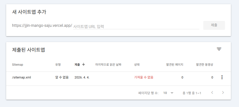 다시 구글 서치 콘솔에 가서 새 사이트맵을 추가하고 제출 하면 완료!