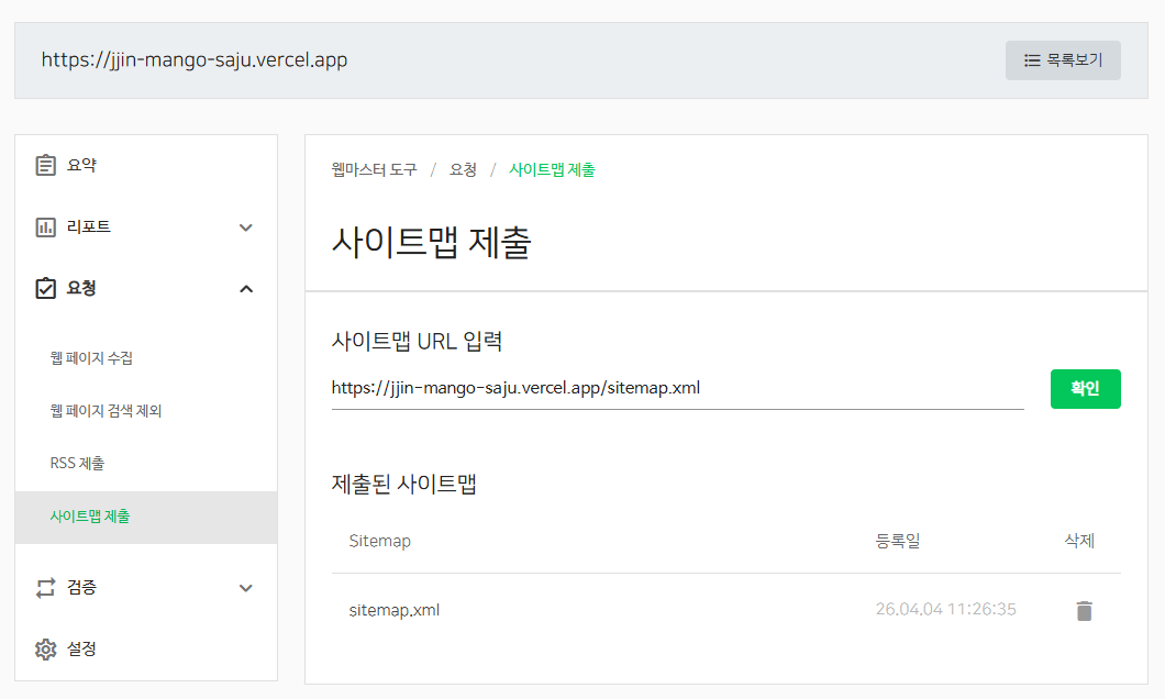 현재 Vercel 배포 주소를 입력하면