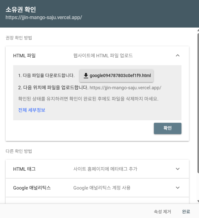 소유권 확인창이 뜨는데 구글이 이사이트 진짜