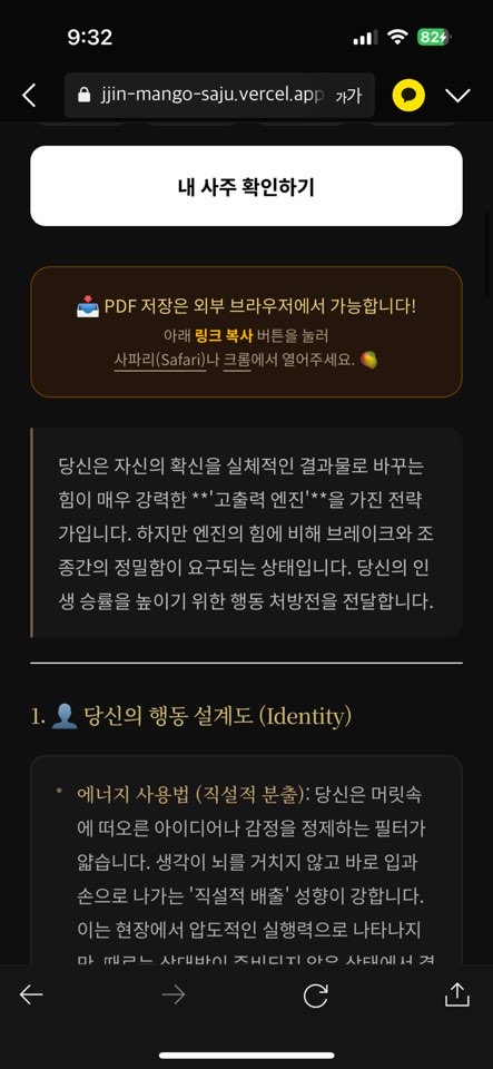 하단의 PDF 저장 기능을 이용해 나만의 사주 가이드를 소장해 보세요. 🥭