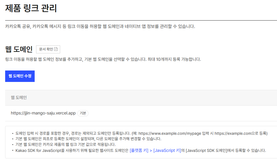 플랫폼 키 > JavaScript SDK도메인에도