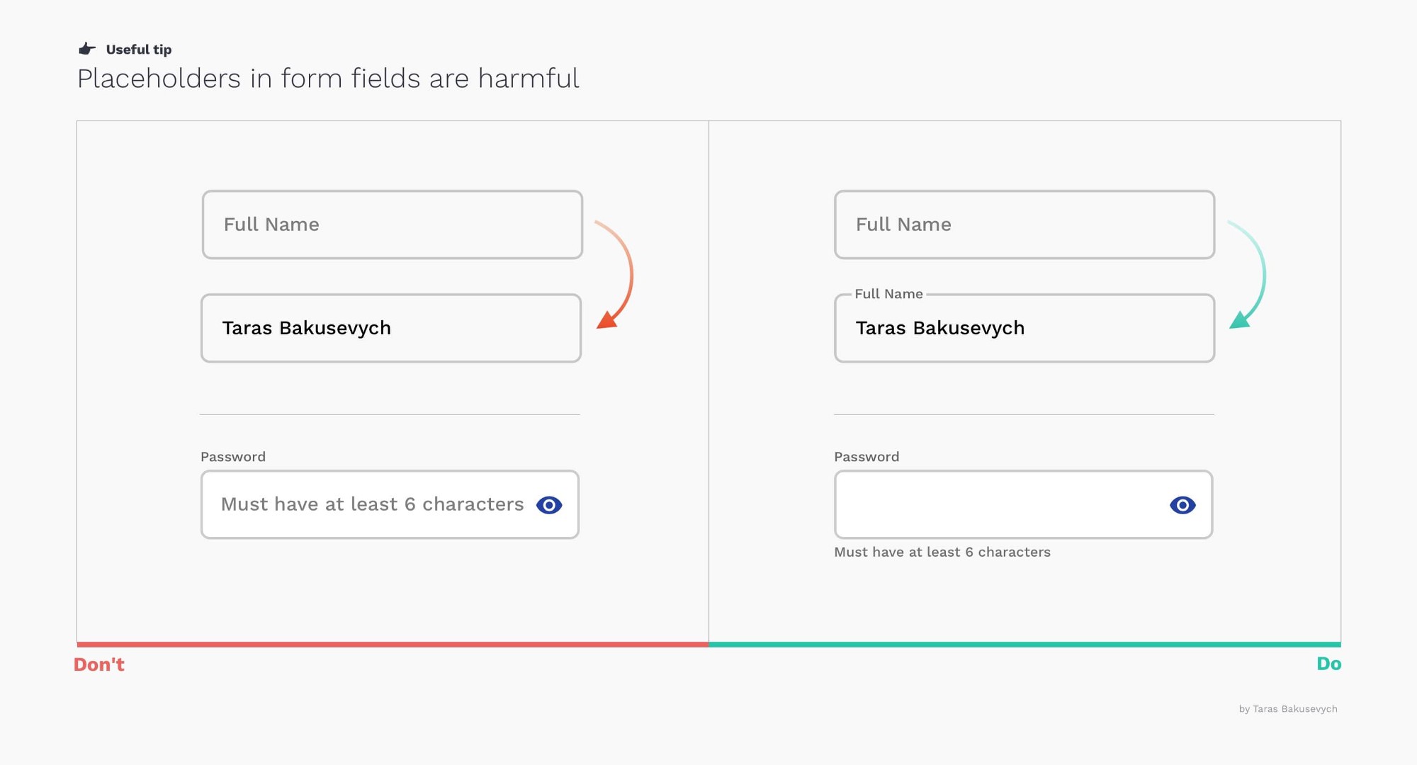 - placeholder 텍스트가 사라지면, 사용자는 단기 기억을 하고 있어야 하며,
