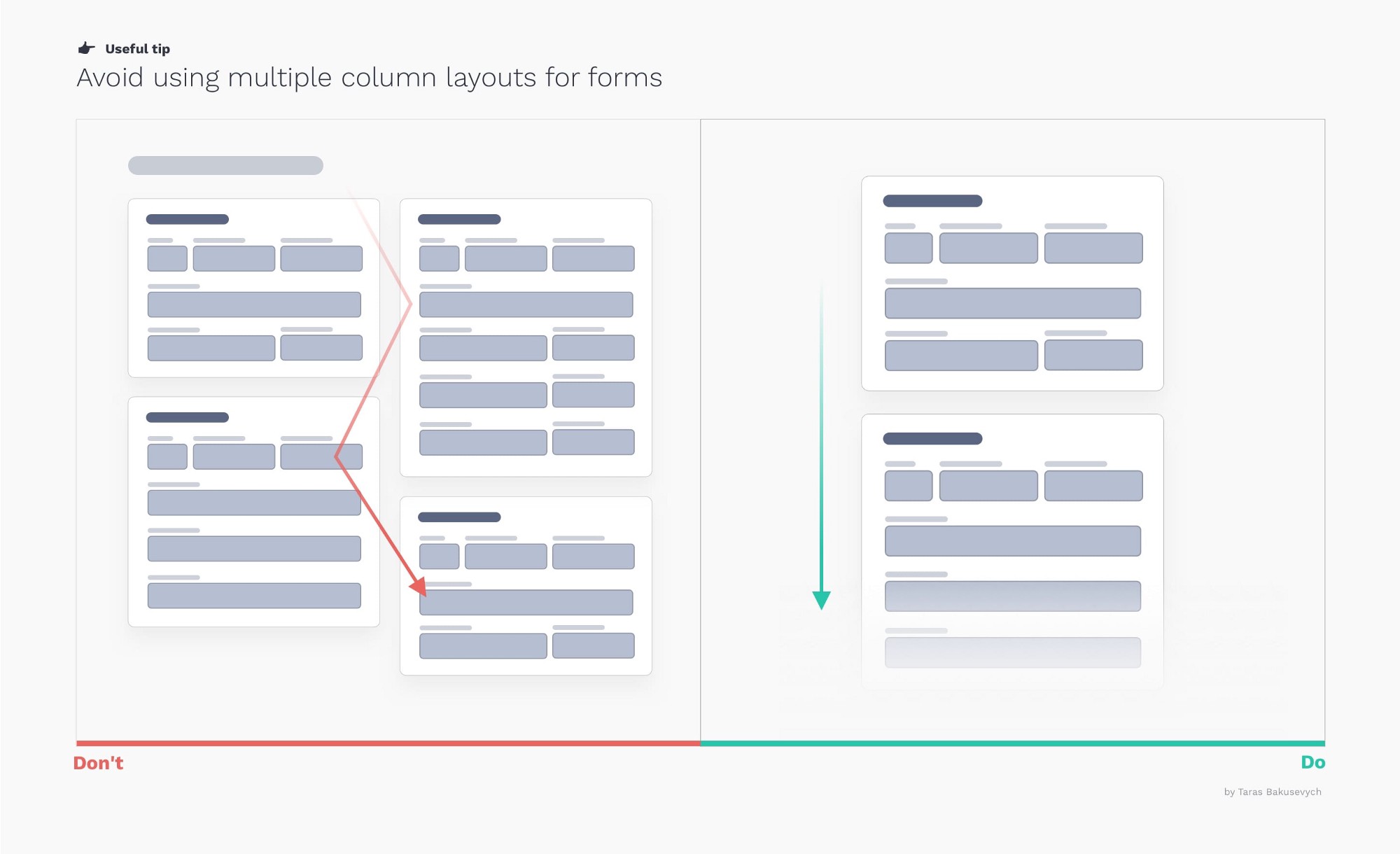 여러 개의 열로 된 레이아웃을 사용한 결과, 실제로 사용자는 입력해야 할 데이터를 건너뛰거나,