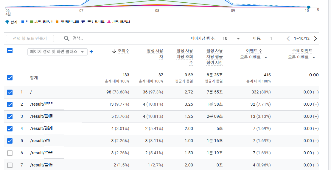 초기 데이터라 내가 작업한 테스트 수치가