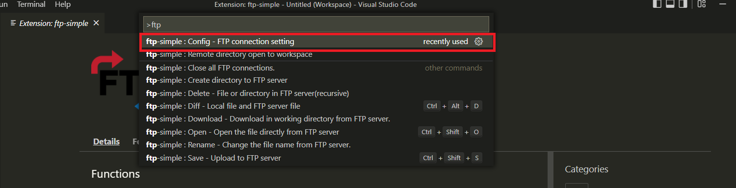 설치가 끝나면 F1을 눌러 설치가 끝나면 F1을 눌러 ftp-simple : Config - FTP connection setting 검색 후 설치 합니다.