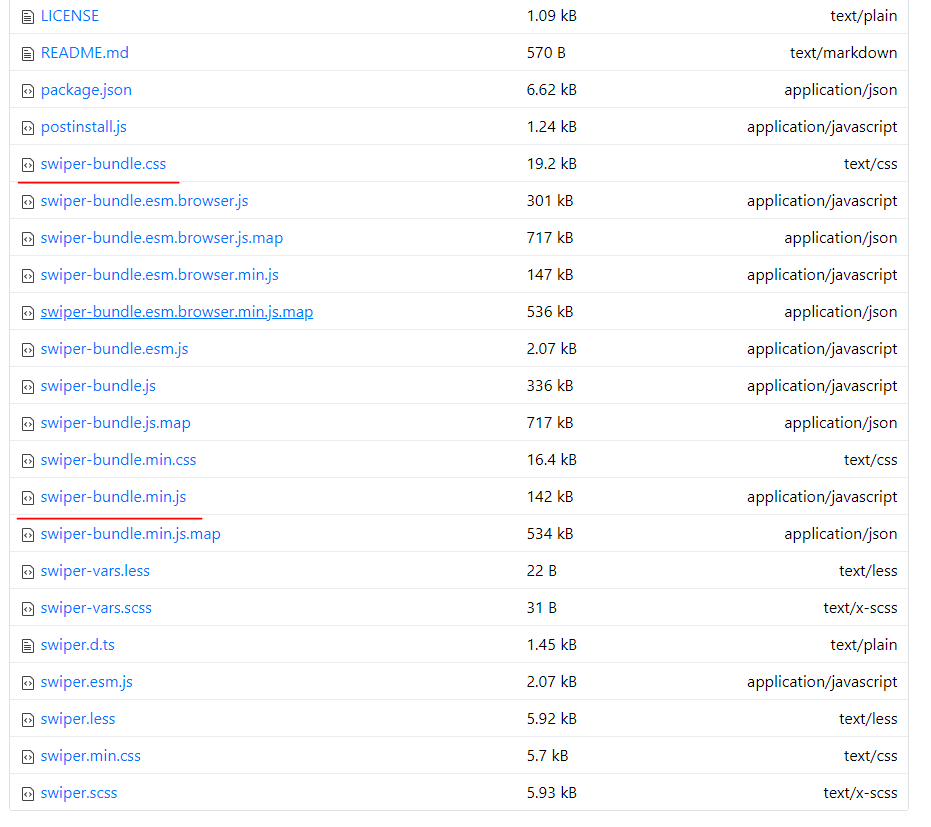 swiper-bundle.css파일과, swiper-bundle.min.js파일을 작업폴더에 다운로드하시면 되고,
