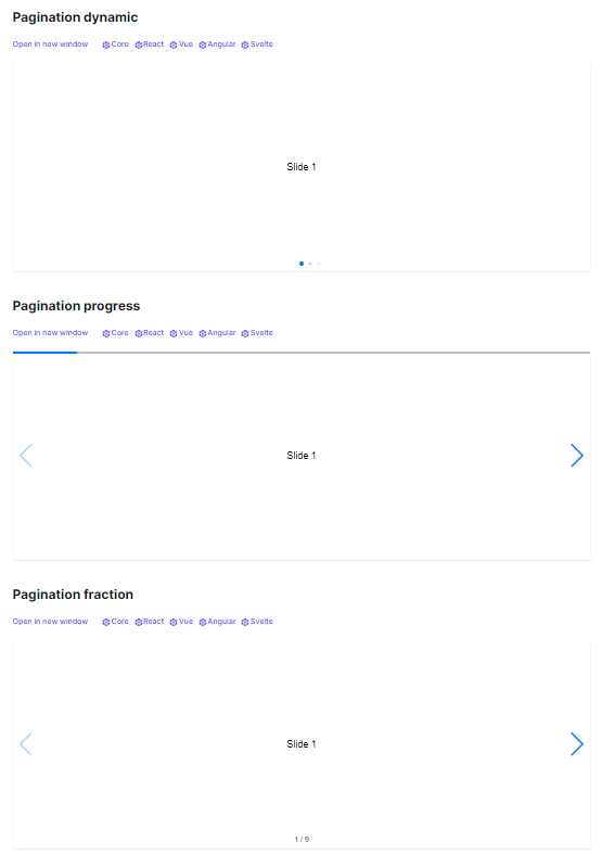 기본적인 pagination과 arrow를 사용하는 사이트도 있습니다.