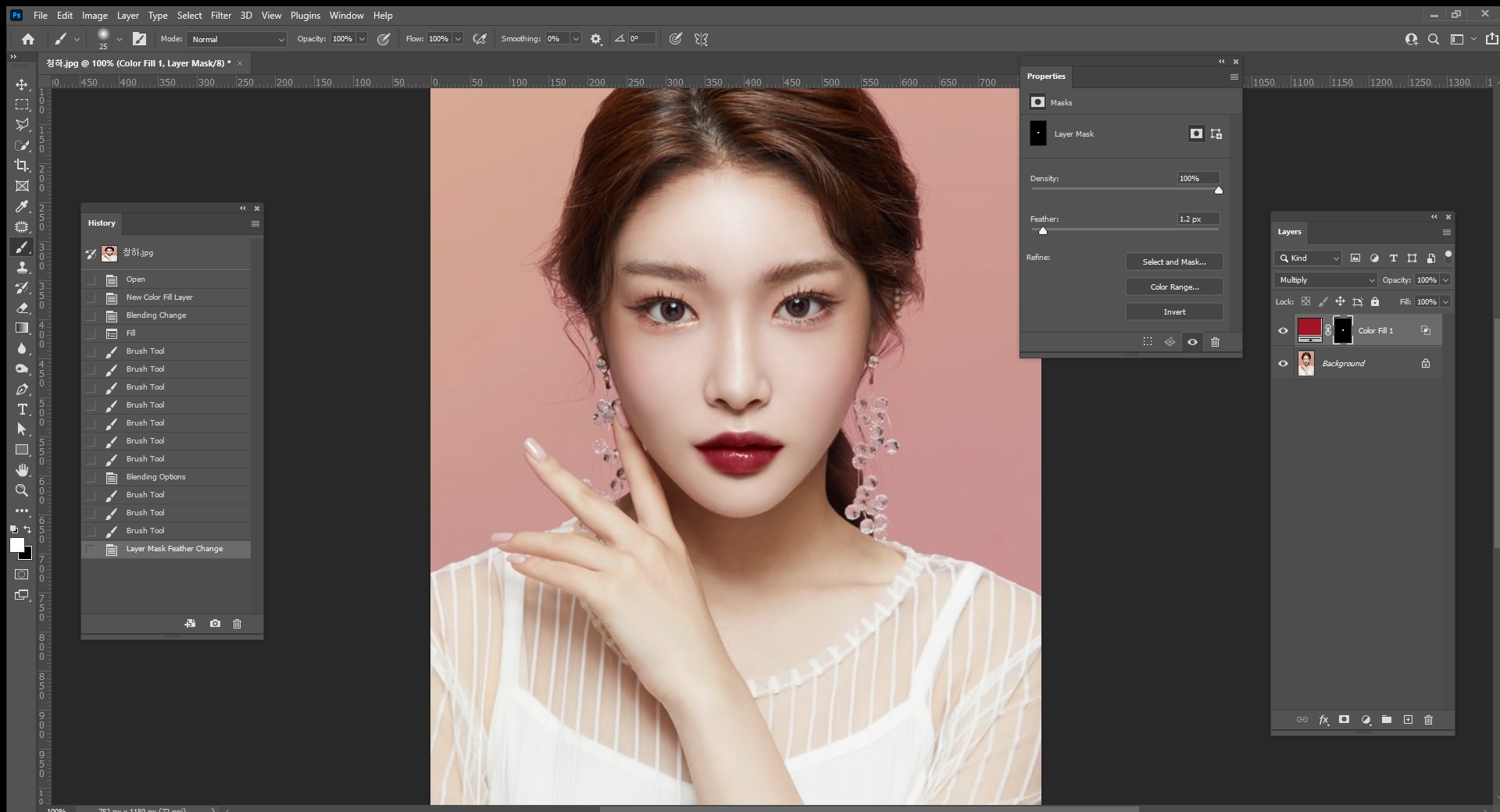 02) 레이어마스크에 전체 검정색 채우고 입술부분만 흰색으로 칠하기