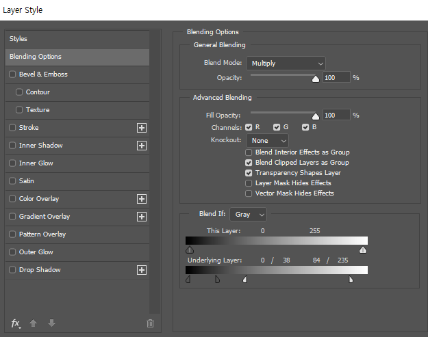 03) Blending Option에서 Underlying Layer 슬라이드 반으로 나눠서 조정