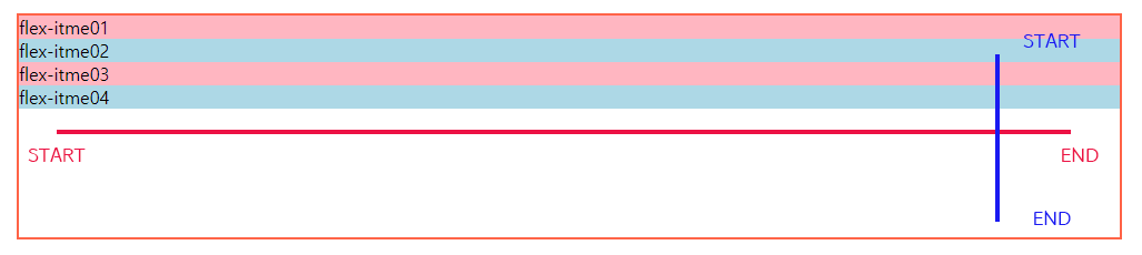 만약 방향이 row에서 column으로 바뀐다면 justify-content속성과 align-items의 속성도 방향이 변경됩니다.