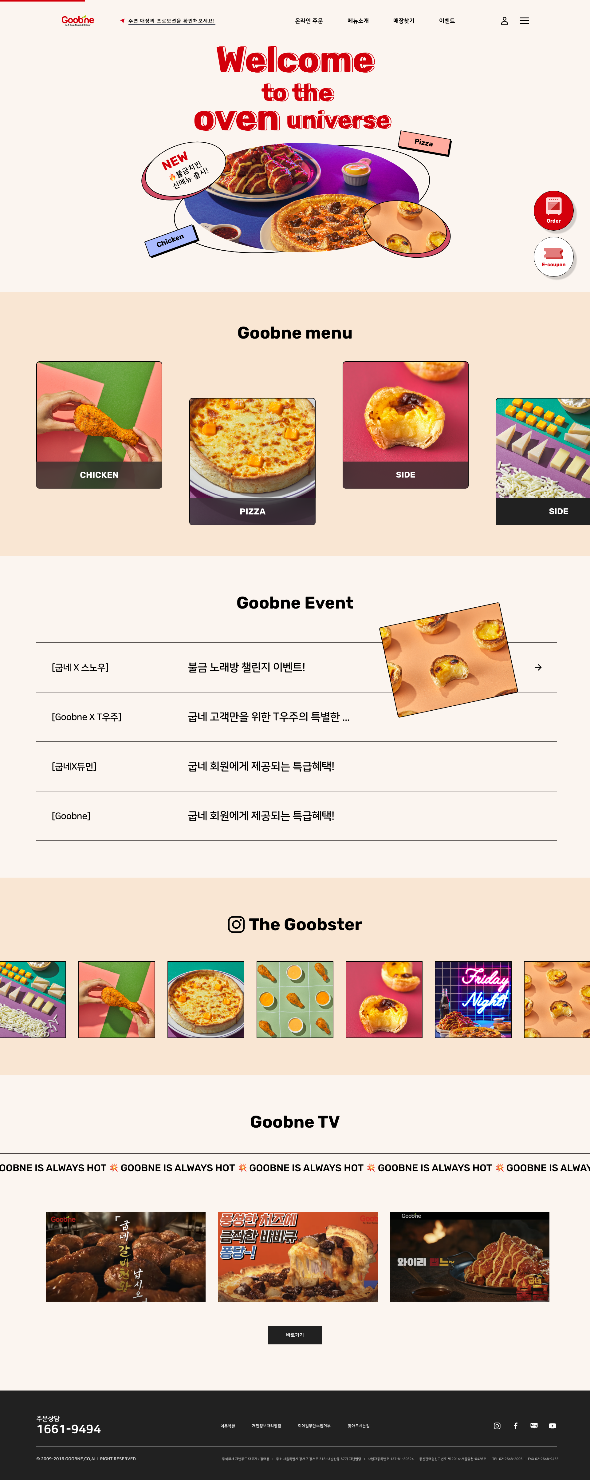 오븐 요리 마스터 '굽네' 공식 홈페이지 - 치킨, 피자, 디저트 등 제품 소개, 매장 및 온라인 주문 안내