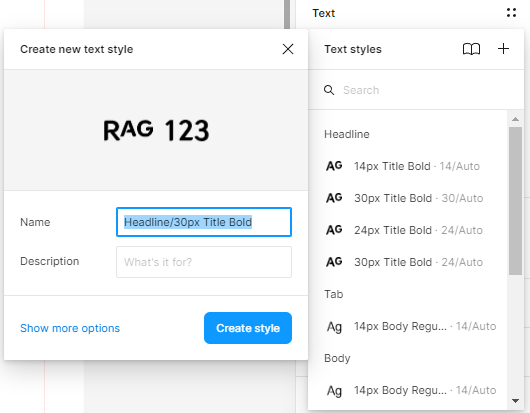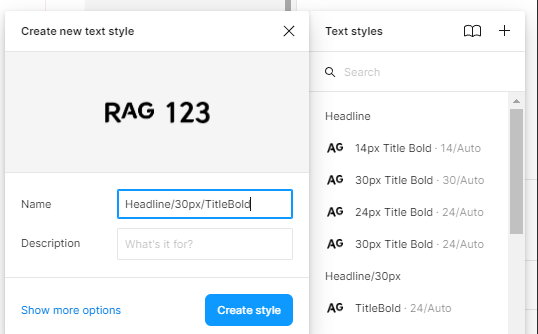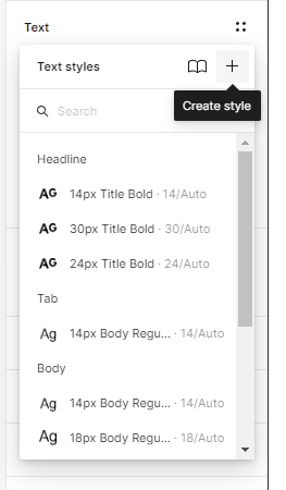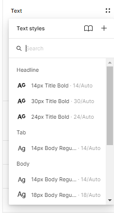 이런식으로 피그마에 스타일을 등록 해놓은 거에요~