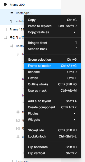 프레임으로 만든 Frame199는 프레임요소가 오토레이아웃 박스가 되었고