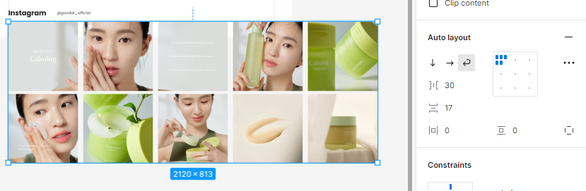 저렇게 이미지 10장을 오토레이아웃을 묶고 Wrap을 눌렀더니
