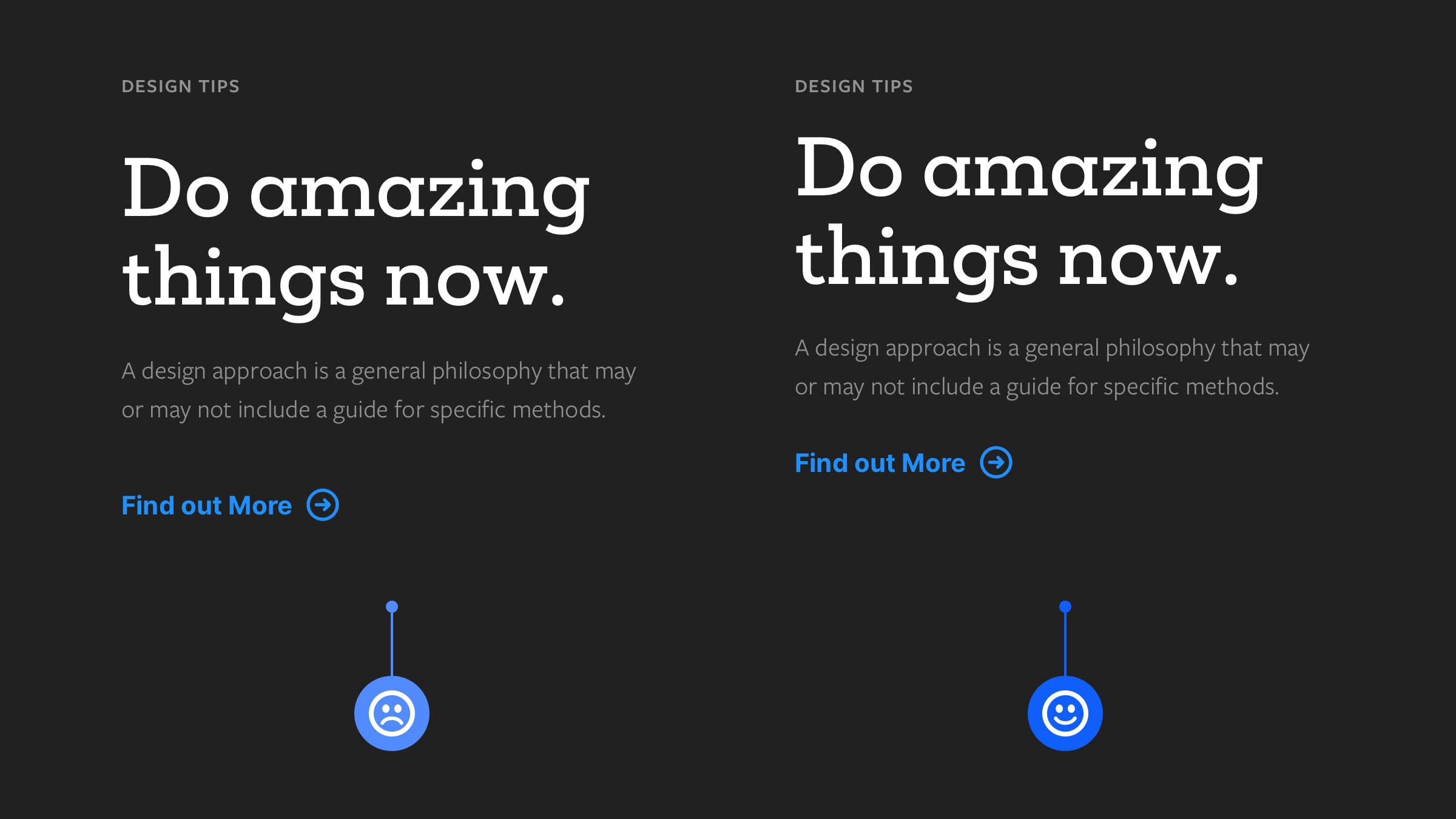 // 반대의 경우 : 밝은 텍스트> 어두운 배경. 특히 긴 형식의 사본의 경우 글꼴 두께를 약간 늘리는 것이 가장 좋다.