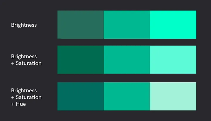 만약 하나의 주요 색상으로 정보를 구별하기 어려운 경우, 밝은 색과 어두운 색을 사용합니다.