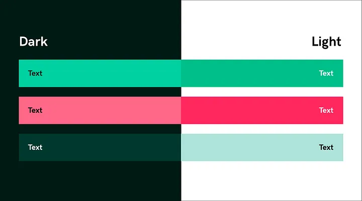 다크 모드를 디자인할 때는 배경 색상이 반전되기 때문에 동일한 색상을 사용하는 대신