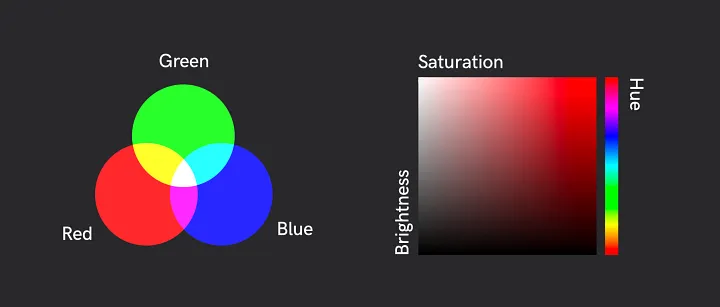 다양한 색상을 표현하는 기본적인 방법 - HSV/HSB(색조, 채도, 명도 또는 밝기): 직관적이고 다루기 쉬운 색 속성