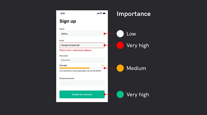 특히 디지털 디자인에서는 사용자가 빠르게 우선순위에 따라 행동해야 할 상황에 따라 색상을 신중하게 다뤄야 합니다.