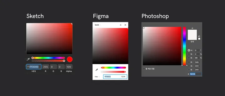디지털에서는 주로 RGB, HSL, HSB 등의 색상 모델이 사용되며, 작업할 때 주로 HEX와 RGB가 사용됩니다.