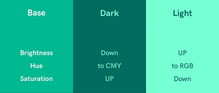 이 때, 주요 색상보다 더 밝은 색과 주요 색상보다 더 어두운 색을 정의하고,