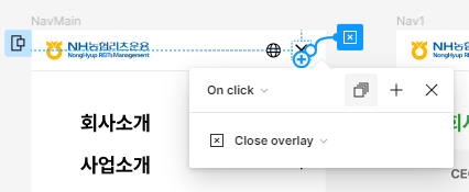 물론 뎁스가 있는 프레임의 x버튼도 Close overlay를 설정해줬구여