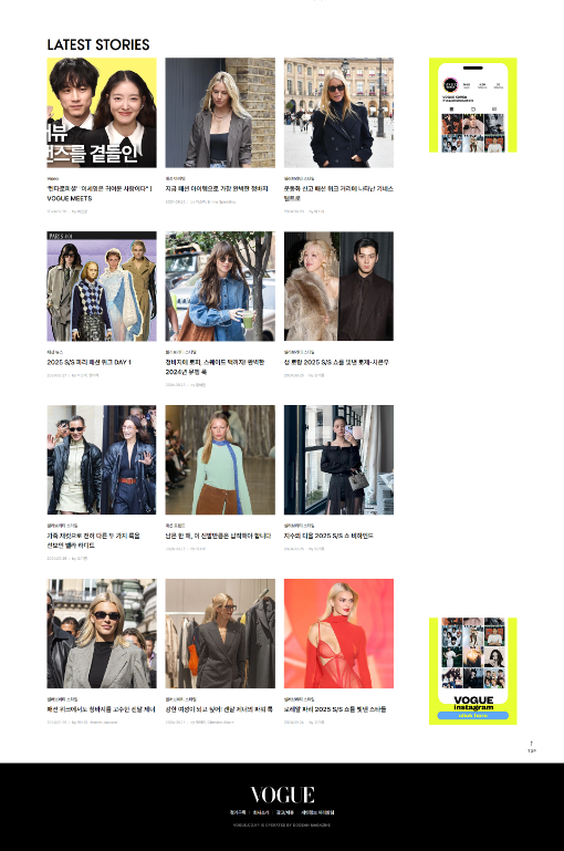 안녕하세요. 찐망고 입니다. 오늘은 보그코리아 웹사이트의 마지막 하단 섹션을 클론 해 볼 건데요. 보그 코리아 (Vogue Korea)컬렉션부터 스타일, 쇼핑, 뷰티, 라이프스타일, 셀러브리티까지 지금 가장 핫한 트렌드 소개www.vogue.co.kr 하단섹션은 왼쪽과 오른쪽으로 나뉘어서왼쪽 섹션은 grid나 flex를 이용한 리스트섹션, 그리고 오른쪽은 배너모양의 이미지가 한 장 있어요.스크롤 시 오른쪽 이미지가 고정되어 푸터섹션에 도착할 때까지 움직입니다. 오른쪽 배너이미지는 처음엔 absoulte였다가 다시 fixed로 변경할 예정이고,fixed변경 시 좌표값이 부모요소 기준에서 뷰포트 기준으로 변경되므로그 부분을 염려해서 CSS작업을 해볼 예정이에요 왼쪽과 오른쪽을 저렇게 fix클래스 요소로 ..